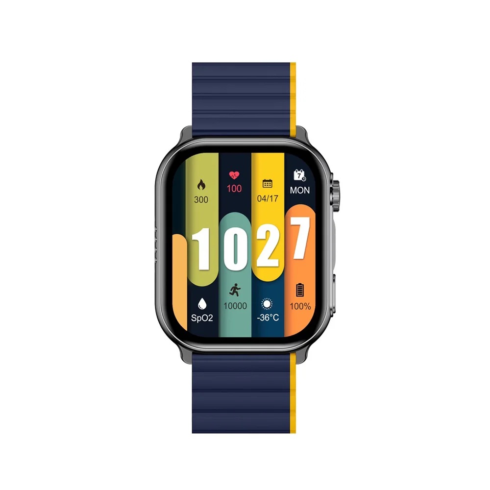Contenido del Paquete Smartwatch, Correa azul/naranja, Correa negra adicional, Protector de Pantalla extra